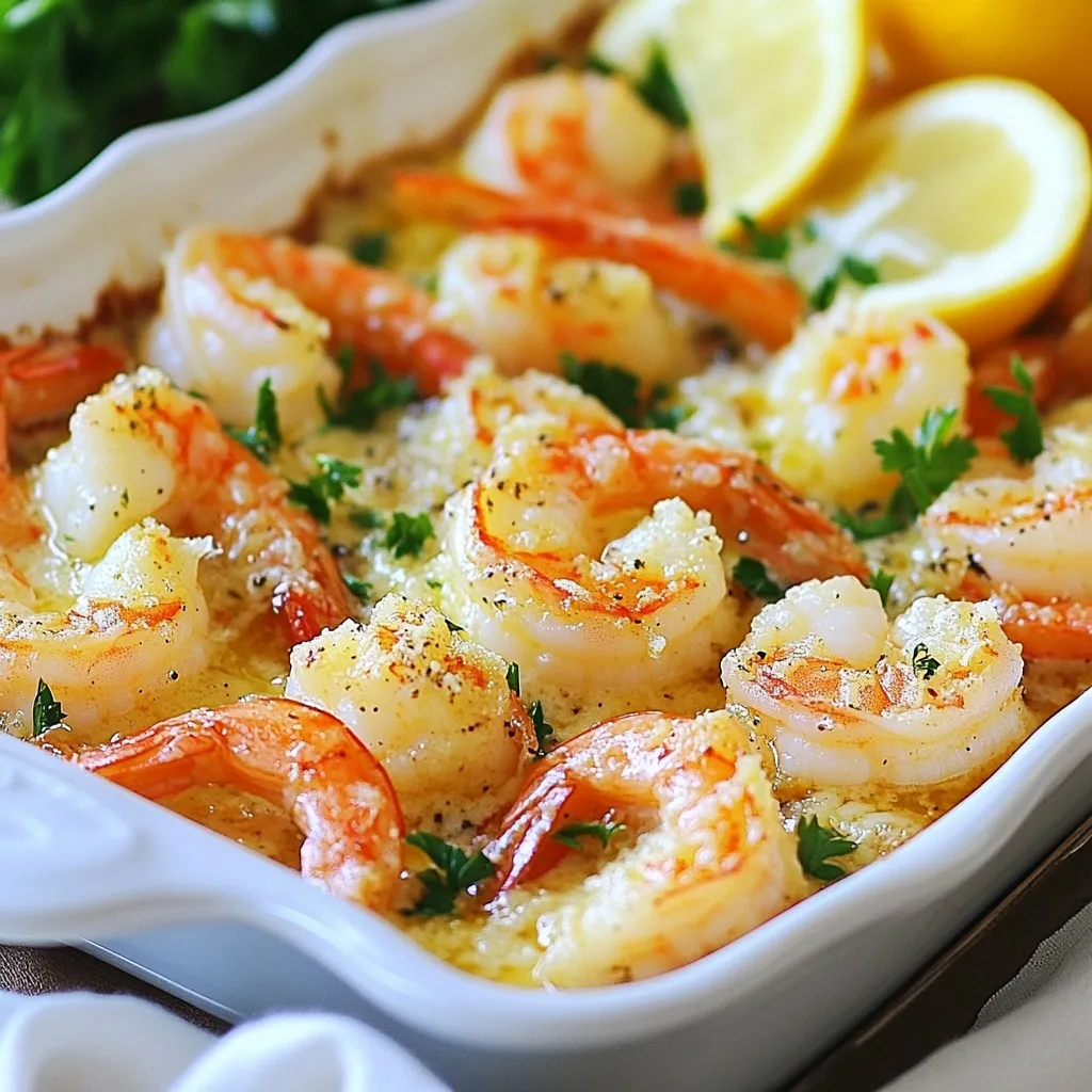 A quick and easy shrimp dish baked with garlic and Parmesan cheese for a delicious meal.