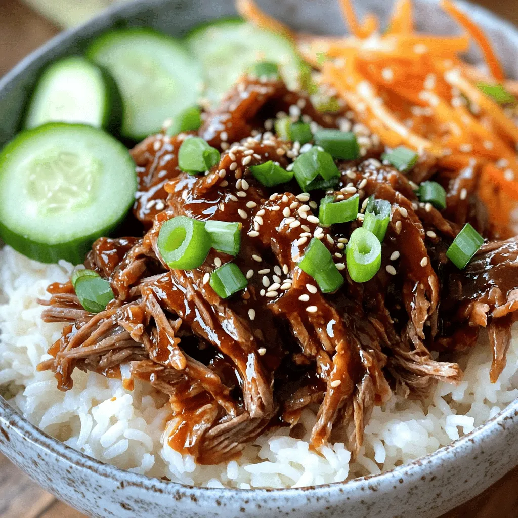 For the best flavor, serve the beef over warm jasmine rice. The rice soaks up the delicious sauce. Add fresh toppings like shredded carrots and cucumber slices. This adds crunch and color to your bowl. Consider serving with a side of kimchi. It brings a nice tang and spice that pairs well with the beef. Present the bowls on a wooden platter for a rustic look. A sprinkle of sesame seeds on top makes it look even better. Enjoy your Korean BBQ beef bowls!