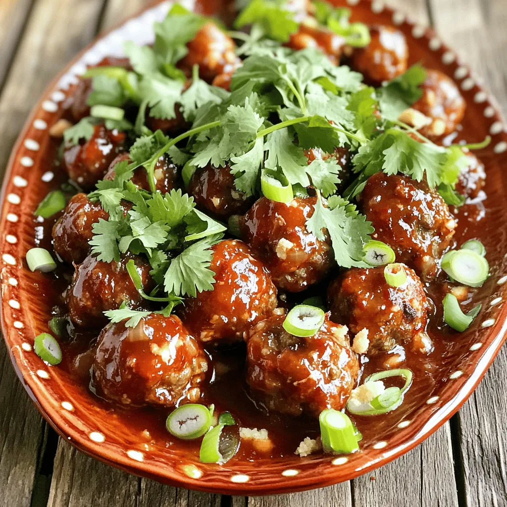Once they are ready, stir the meatballs gently in the sauce. This helps them soak in all that delicious flavor. For a fresh touch, add sprigs of cilantro before serving. Enjoy your tasty dish!