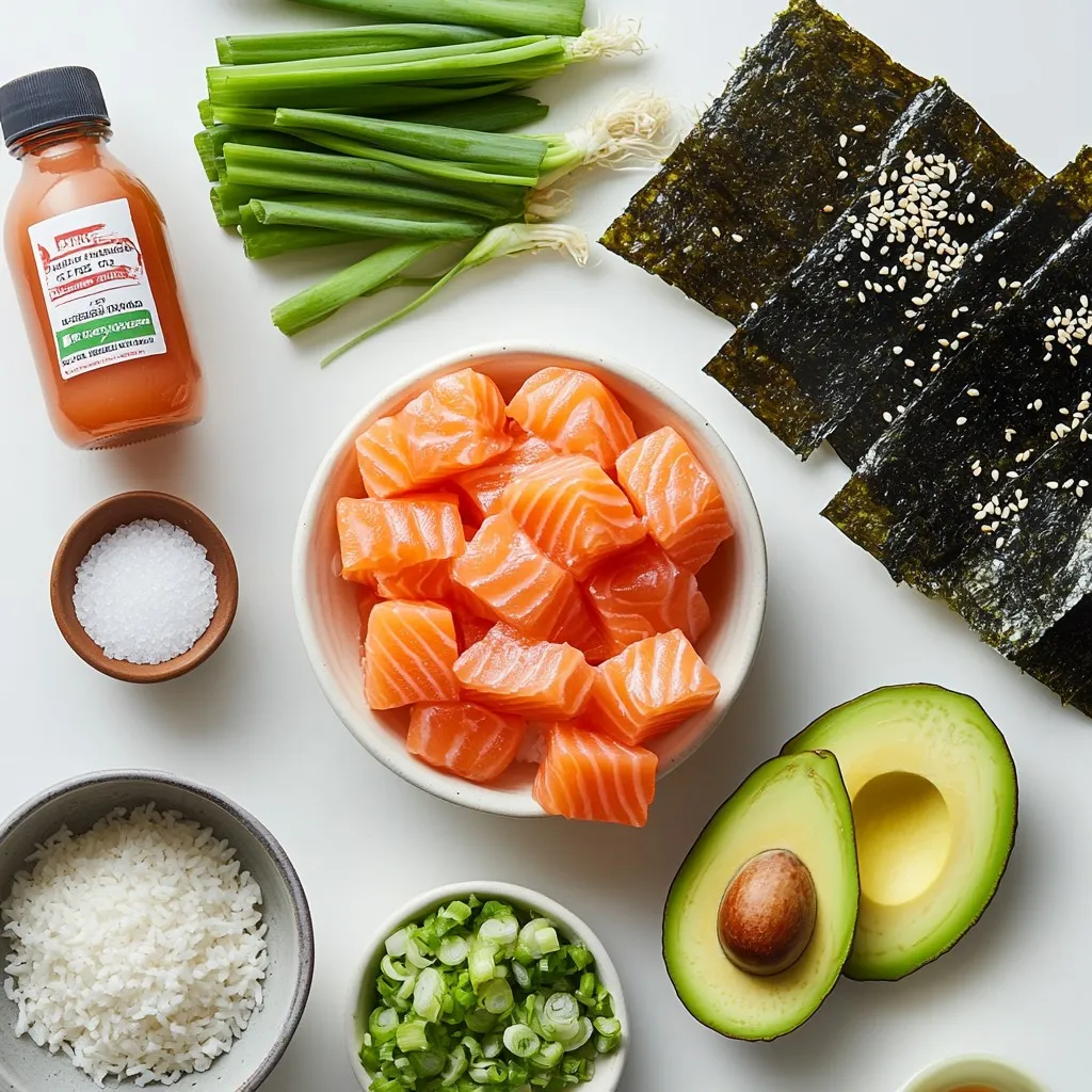 Sushi rice is the base of this dish. It has a sticky texture that holds together well. Fresh salmon adds rich flavor and protein. These two ingredients make the heart of your spicy salmon sushi bake.
