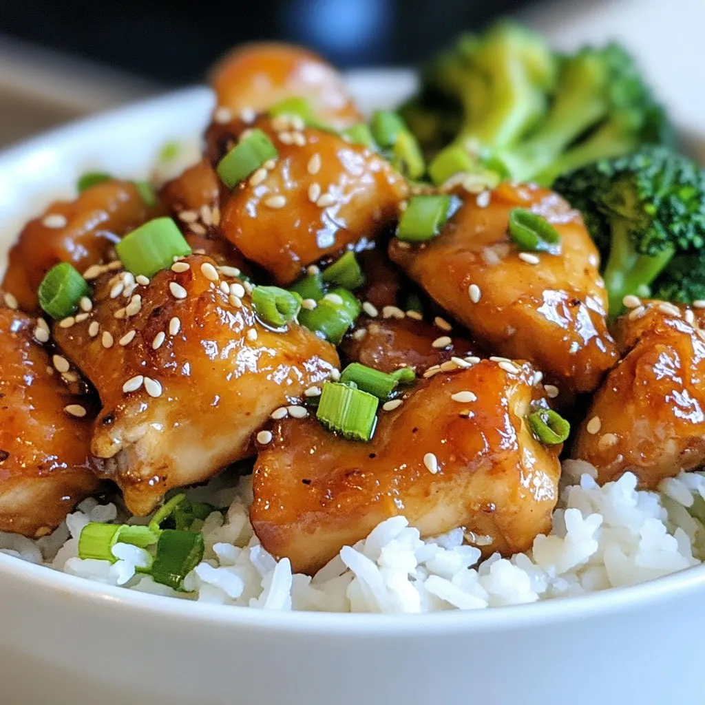 To finish, sprinkle chopped green onions and sesame seeds over the chicken. This adds a fresh crunch. Serve your bowls with steamed broccoli or some stir-fried mixed vegetables. This makes a complete and colorful meal. Enjoy your Sticky Honey Chicken Rice Bowls!