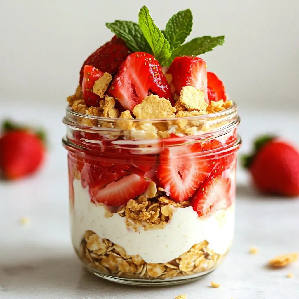 When prepping, make multiple jars at once. You can enjoy them throughout the week. Prepare oats, yogurt, and strawberries in layers to save time. Make sure to cover them well to lock in flavor.