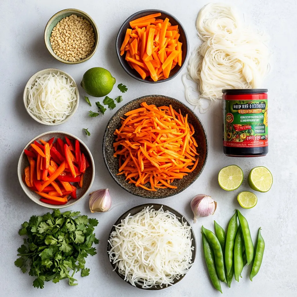 These ingredients blend together to create a rich and tasty dish. The rice noodles are soft and soak up the flavors well. Coconut milk adds creaminess and sweetness. Red curry paste gives it a spicy kick. Fresh veggies add crunch and color.