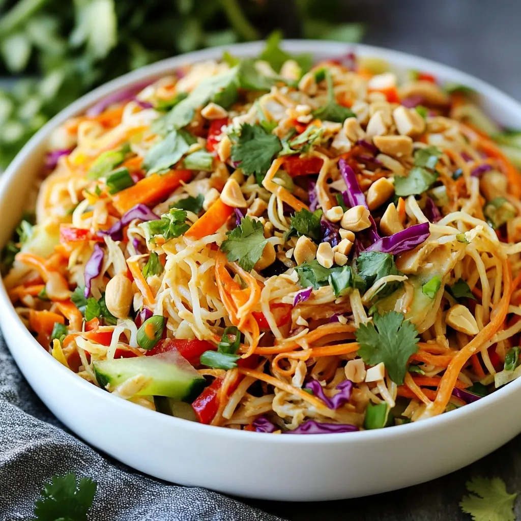 When serving your Thai peanut noodle salad, use a large, colorful bowl. This makes the dish pop! Top it with extra cilantro and crushed peanuts for added texture. Lime wedges on the side are great too. They add a fresh, zesty touch.