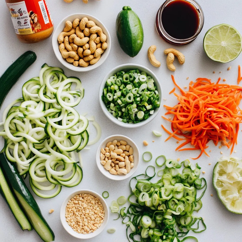 Yes, you can prepare some parts ahead. Spiralize the zucchini and chop the veggies. Store them in the fridge until you’re ready. Make the peanut sauce and keep it in a jar. When you’re ready to cook, sauté the veggies and combine everything. This saves time and keeps the dish fresh!