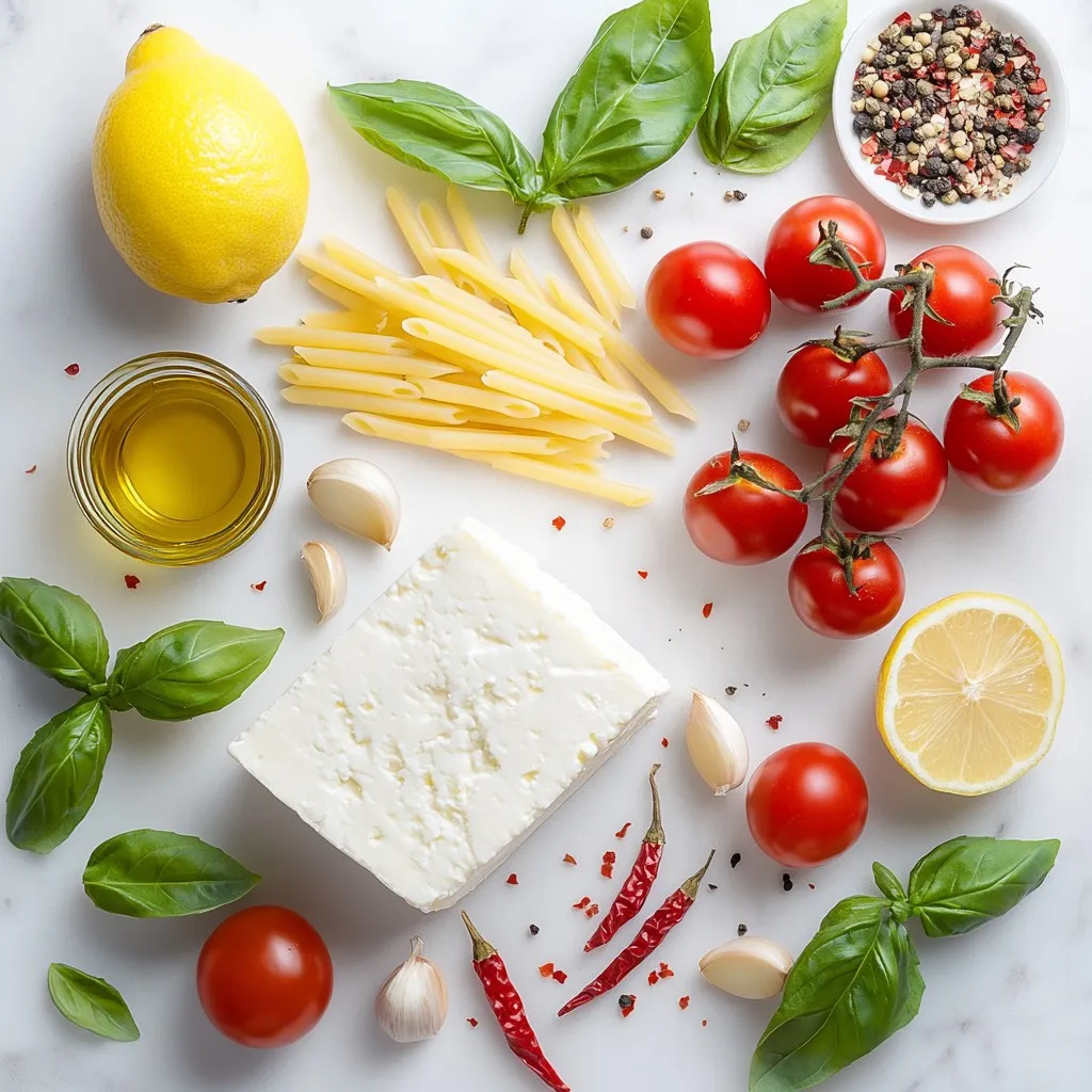 A delicious and creamy pasta dish featuring baked feta and cherry tomatoes.