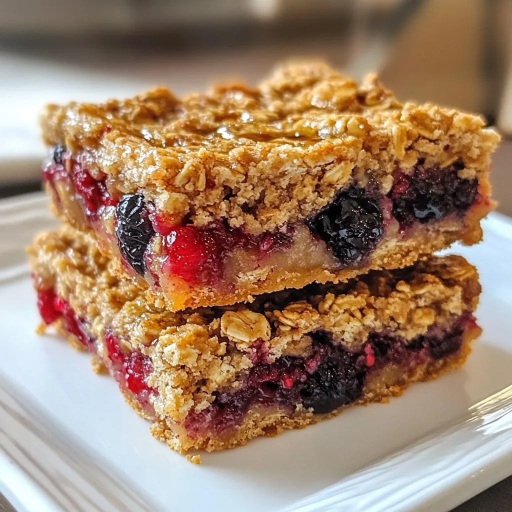 Delicious and healthy vegan oatmeal bars packed with mixed berries.