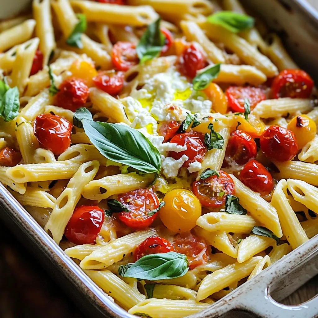 To make this tasty feta pasta bake, gather these items: - 200g pasta (penne or fusilli are great) - 200g feta cheese, at room temperature - 1 cup cherry tomatoes, halved - 1 red bell pepper, diced - 1 medium onion, finely chopped - 4 cloves garlic, minced - 1 teaspoon dried oregano - 1 teaspoon chili flakes (optional) - 2 tablespoons extra virgin olive oil - Salt and freshly cracked pepper, to taste - Fresh basil leaves, for garnish - Grated Parmesan cheese, for topping (optional) I love using penne or fusilli for this dish. Both shapes hold sauce well. Penne has ridges that grab flavor. Fusilli twists add fun to the plate. You can use any pasta you like, but these work best. For extra flavor, try these toppings: - Grated Parmesan cheese enhances richness. - Fresh basil leaves add bright flavor. - A drizzle of olive oil gives a nice finish. Feel free to mix and match. Get creative with your toppings! First, set your oven to 200°C (392°F). Preheating helps the veggies blister and the feta melt. This step is key for great flavor. Grab a large, oven-safe dish. Add 1 cup of halved cherry tomatoes, 1 diced red bell pepper, and 1 finely chopped onion. Toss in 4 minced garlic cloves, 2 tablespoons of olive oil, and 1 teaspoon of dried oregano. If you like heat, add chili flakes too. Season with salt and pepper. Mix until everything is coated nicely. Place the dish in the oven for 25 to 30 minutes. Watch for the tomatoes to blister and the feta to soften. You want it bubbling and inviting. While the veggies bake, boil salted water in a pot. Cook 200g of pasta, like penne or fusilli, until al dente. Drain the pasta and set it aside. After baking, take the dish out of the oven. Use a fork to mash the melted feta into the veggies. This creates a creamy sauce that binds everything together. Add the drained pasta to the baking dish. Mix it well with the creamy sauce. If you want, sprinkle grated Parmesan cheese on top. Bake for another 5 to 10 minutes until the cheese melts and gets a bit golden. Once done, let it cool a moment. Garnish with fresh basil before serving. Enjoy your delicious meal! To get a smooth and creamy sauce, use a fork to mash the feta cheese. This helps blend it with the cooked vegetables. Make sure to bake the feta until it softens well. The warmth from the pasta and veggies helps create a rich texture. If you want even more creaminess, stir in a splash of pasta water after combining everything. Serve this dish straight from the baking dish. It looks great and keeps the food warm. For a special touch, drizzle more olive oil on top. Add a few fresh basil leaves for color and flavor. You can also offer grated Parmesan on the side, so guests can add as much as they like. One mistake is not preheating the oven. This can cause uneven cooking. Make sure to watch the baking time. Overbaking can dry out the dish. Another common error is not salting the pasta water. This step is key for flavor. Lastly, don’t skip mashing the feta enough. If you leave it in big chunks, you won’t get that creamy blend. {{image_4}} You can easily boost this dish with protein. Chicken and shrimp work great. For chicken, use cooked, shredded breast meat. Toss it into the pasta before baking. For shrimp, add peeled and deveined shrimp in the vegetable mix. They cook quickly and add a nice bite. Consider cooking both proteins in olive oil and garlic for extra flavor. If you want a vegetarian version, skip the meat. You can add more veggies, like spinach or zucchini. For a vegan option, replace feta with a plant-based cheese. Silken tofu blended with lemon and nutritional yeast can mimic the creamy texture. Don't forget to season well for the best taste. To adjust the spice level, play with the chili flakes. Use more if you love heat. For a milder dish, skip the flakes or use a small amount. You can also add sweet bell peppers for flavor without the heat. If you want a kick, try adding jalapeños or a dash of hot sauce. After enjoying your feta pasta bake, let any leftovers cool down. Transfer them to an airtight container. Store it in the fridge for up to three days. This keeps the flavors fresh. Make sure to seal it well. If you want, you can add a layer of plastic wrap before closing the lid. To freeze your pasta bake, wait until it cools completely. Place it in a freezer-safe container. You can also use freezer bags. Make sure to remove as much air as possible. This helps prevent freezer burn. The dish can last in the freezer for up to three months. When ready to eat, thaw it in the fridge overnight before reheating. Reheat your pasta bake in the oven for the best texture. Preheat the oven to 180°C (350°F). Transfer the dish to an oven-safe container if needed. Cover it with aluminum foil to keep moisture in. Heat for about 20-25 minutes, or until it’s hot throughout. If you're in a hurry, you can use the microwave. Just heat it in short bursts, stirring in between. Enjoy it warm with a sprinkle of fresh basil! Yes, you can use different cheese. Goat cheese works well. You might also try ricotta or cream cheese. Each cheese gives a unique taste. Just remember, feta cheese adds a salty flavor. So, if you swap it out, adjust the salt in the dish. Penne or fusilli are great choices. They hold sauce well. You can also use rotini or farfalle. Each shape adds fun to your plate. Avoid thin pasta like spaghetti. It may not hold the creamy sauce as well. Leftovers can last up to three days in the fridge. Store them in an airtight container. To keep the pasta fresh, avoid adding too much extra sauce. You can reheat it in the oven or microwave. Just add a splash of water to keep it moist. Yes, you can prepare it ahead. Make the mixture and store it in the fridge. When ready, just bake it. If you want to freeze it, assemble the dish, then cover it well. Bake it from frozen, but it may take longer. The blog post covered how to make a delicious feta pasta bake. I shared the key ingredients, step-by-step instruc