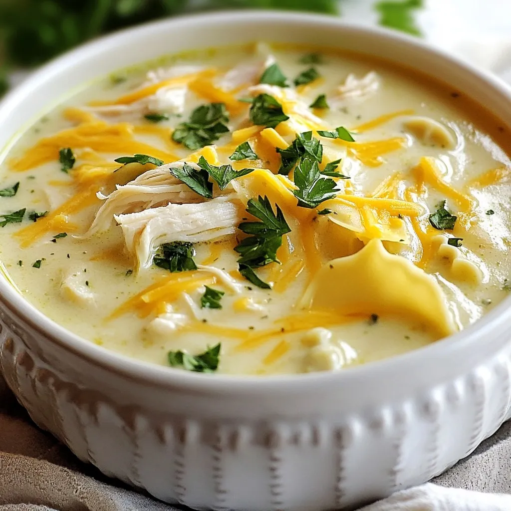 - 1 tablespoon olive oil - 1 medium onion, diced - 3 cloves garlic, minced - 2 cups cooked chicken breast, shredded - 4 cups chicken broth - 1 cup heavy cream For this soup, I start with olive oil, onion, and garlic. I love how these simple ingredients create a great base. The cooked chicken adds protein, while chicken broth gives flavor. The heavy cream brings a rich, smooth texture that makes every bite comforting. - 1 cup ricotta cheese - 1 1/2 cups shredded mozzarella cheese - 1/2 cup grated Parmesan cheese Cheese makes this soup extra special. I use ricotta for creaminess. Mozzarella melts beautifully and adds stretch. Grated Parmesan adds a salty, nutty flavor that ties it all together. - 1 teaspoon dried oregano - 1 teaspoon dried basil - 1/2 teaspoon red pepper flakes (optional) - Salt and pepper to taste - Fresh parsley, chopped for garnish Seasonings are key to flavor. Dried oregano and basil provide great depth. Red pepper flakes can add a nice kick, but you can skip them if you prefer mild soup. Salt and pepper enhance all the flavors. Fresh parsley brightens the dish and makes it look pretty. {{ingredient_image_1}} First, I heat one tablespoon of olive oil in a large pot. I add one diced onion and sauté it for about five minutes. The onion should look soft and clear. Next, I stir in three minced garlic cloves. I cook this for one more minute to bring out the flavor. Then, I add two cups of shredded cooked chicken. After that, I pour in four cups of chicken broth. I also add one teaspoon of dried oregano, one teaspoon of dried basil, and half a teaspoon of red pepper flakes, if I want some heat. I bring this to a nice simmer. Once the base is ready, I slowly stir in one cup of heavy cream. I let the soup simmer gently for about five minutes. This step makes the soup rich and smooth. The cream blends in well, making it comforting and creamy. Next, I add eight broken lasagna noodles into the pot. I cook them according to the package instructions, which usually takes about ten to twelve minutes. While the noodles cook, I keep an eye on the pot. Once the noodles are tender, I lower the heat. Then, I mix in one cup of ricotta cheese, one and a half cups of shredded mozzarella, and half a cup of grated Parmesan cheese. I stir until the cheese melts and the soup is thick. I taste and season with salt and pepper. For the last step, I ladle the soup into bowls. I garnish each bowl with freshly chopped parsley. This adds a nice touch and some color. Now, the soup is ready to enjoy! To make your soup burst with flavor, add some spices and herbs. I recommend using: - 1 teaspoon dried oregano - 1 teaspoon dried basil - 1/2 teaspoon red pepper flakes (optional) These ingredients add depth and aroma. You can also try fresh herbs like thyme or rosemary. They bring a nice brightness to the dish. The key to a creamy soup is how you add the cream. Slowly pour in the heavy cream while stirring. This helps it blend well and prevents curdling. Let the soup simmer gently after adding the cream. This will make sure the flavors meld together beautifully. For the best noodle texture, cook the lasagna noodles according to the package instructions. Break them into smaller pieces for even cooking. If your soup is too thick, add more chicken broth or water. For a thicker soup, you can mash a few noodles while cooking. This will add a nice body to your soup. Pro Tips Use Rotisserie Chicken: For a quicker meal, consider using store-bought rotisserie chicken. It saves time and adds great flavor to the soup. Adjust the Creaminess: If you prefer a lighter soup, reduce the amount of heavy cream and replace it with more chicken broth. Customize the Herbs: Feel free to add fresh herbs like thyme or parsley towards the end of cooking for an extra burst of flavor. Leftover Storage: Store any leftovers in an airtight container in the refrigerator for up to 3 days. Reheat gently on the stove, adding a splash of broth if needed. {{image_2}} You can easily switch proteins in this soup. If you want a quicker option, use rotisserie chicken. It saves time and still tastes great. Shredded turkey is another tasty choice. If you prefer plant-based options, try using chickpeas or tofu. Both mix well with the creamy soup. If you're avoiding dairy, there are good choices. Coconut milk can replace heavy cream for a rich taste. Almond or oat milk also work well. For cheese, look for dairy-free mozzarella or creamy cashew cheese. These swaps keep the soup delicious and creamy without dairy. Adding veggies can make this soup heartier. You might try spinach or kale for a boost of greens. Carrots and celery add crunch and flavor. You can also toss in mushrooms for an earthy taste. Just chop them up and add them when you sauté the onion and garlic. This will help the flavors blend nicely. To keep your white chicken lasagna soup fresh, store it in an airtight container. Let the soup cool first. This helps prevent condensation. Place the container in the fridge. It will last for about 3 to 4 days. When you’re ready to enjoy it again, stir well before serving. You can freeze the soup for later. First, allow it to cool completely. Then, pour the soup into freezer-safe bags or containers. Leave some space at the top, as it will expand. Label the bags with the date. The soup can stay in the freezer for up to three months. To thaw it, place it in the fridge overnight. When reheating, use the stovetop for best results. Pour the soup into a pot and heat over medium-low. Stir often to prevent sticking. If the soup seems thick, add a splash of chicken broth or cream. You can also use the microwave. Heat in short bursts, stirring in between. Enjoy your creamy soup warm and delicious! Yes, you can make this soup ahead of time. Store it in an airtight container in the fridge for up to three days. When you want to eat it, just reheat on the stove. If the soup gets too thick, add a little chicken broth or water to bring it back to life. To add so